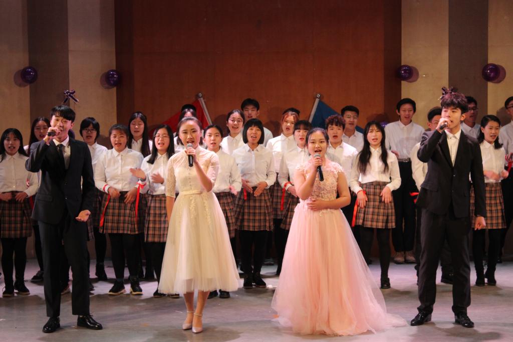 晚会分为"我的新时代"、"我的新使命"、"我的新征程"、"永远在路上"四个篇章。伴随着富有青春活力的舞蹈,晚会拉开了序幕。歌曲《我和我的祖国》高亢激昂,唱出了当代青年的拳拳爱国心;合唱《相亲相爱》点燃了晚会的气氛,引得观众连声叫好;魔术表演《幻影移位》神秘有趣,带领译院学子体会魔幻世界;卢正爱老师的舞蹈《喜悦》温婉优雅,展现了朝鲜传统文化的魅力;包芳老师等人带来的日语歌舞串烧《樱花飞舞时》唱出了独具一格的日本柔情,将气氛推向高潮;研究生带来的《全国第一套研究生广播体操》活力四射,将译院学子的朝气展现得淋漓尽致。小品、魔术、歌舞……各种表演形式别出心裁、异彩纷呈,整场晚会精彩不断、高潮迭起,为台下观众呈上了丰盛的视听盛宴。最后,晚会在歌曲《good time》中落下帷幕。