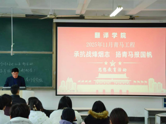 孙杰琼在发言中着重阐释了中国共产党在抗日战争中攻坚克难、浴血奋战的卓越贡献,明确指出抗战胜利的根本原因在于中国共产党的中流砥柱作用。他勉励翻译学子精进专业本领、厚植人文底蕴,筑牢文化自信,坚决拥护中国共产党的领导,努力成长为担当民族复兴大任的时代新人。