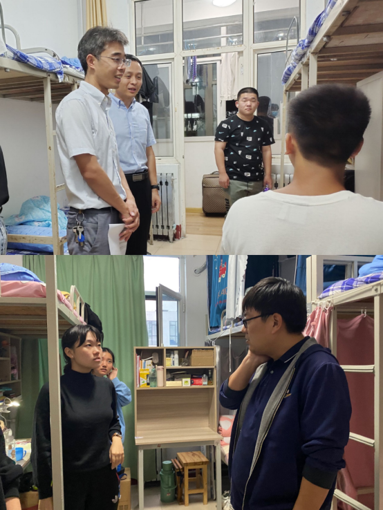 党委副书记岳峰及各年级辅导员带领主要党员干部共同深入学生宿舍开展安全隐患排查工作。