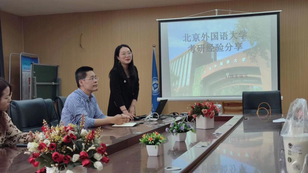 日语系考入北京外国语大学日语语言文学专业的2017级学生张瑞雪和被对外经贸大学翻译硕士专业成功录取的王佳同学结合切身体验分享了宝贵的考研经验。张瑞雪同学主要分析了在准备考研时如何综合自身优势和兴趣等各方面择校择专业的问题,帮助2018级学生找到了考研方向,规避了考研复习过程中经常出现一系列问题。王佳同学则将分享重点放在了日语学习方法的总结上,并讲述了自己在准备考研时详细的复习计划,使2018级各位学生获益匪浅。随后,宋晓凯副院长向大家讲解了考研的目的、研究生的分类、学术型和专业型的区别等考研相关的一系列问题并对今后的考研形势进行了分析,解答了2018级同学的一些提问。至此,本次考研经验交流会圆满结束。