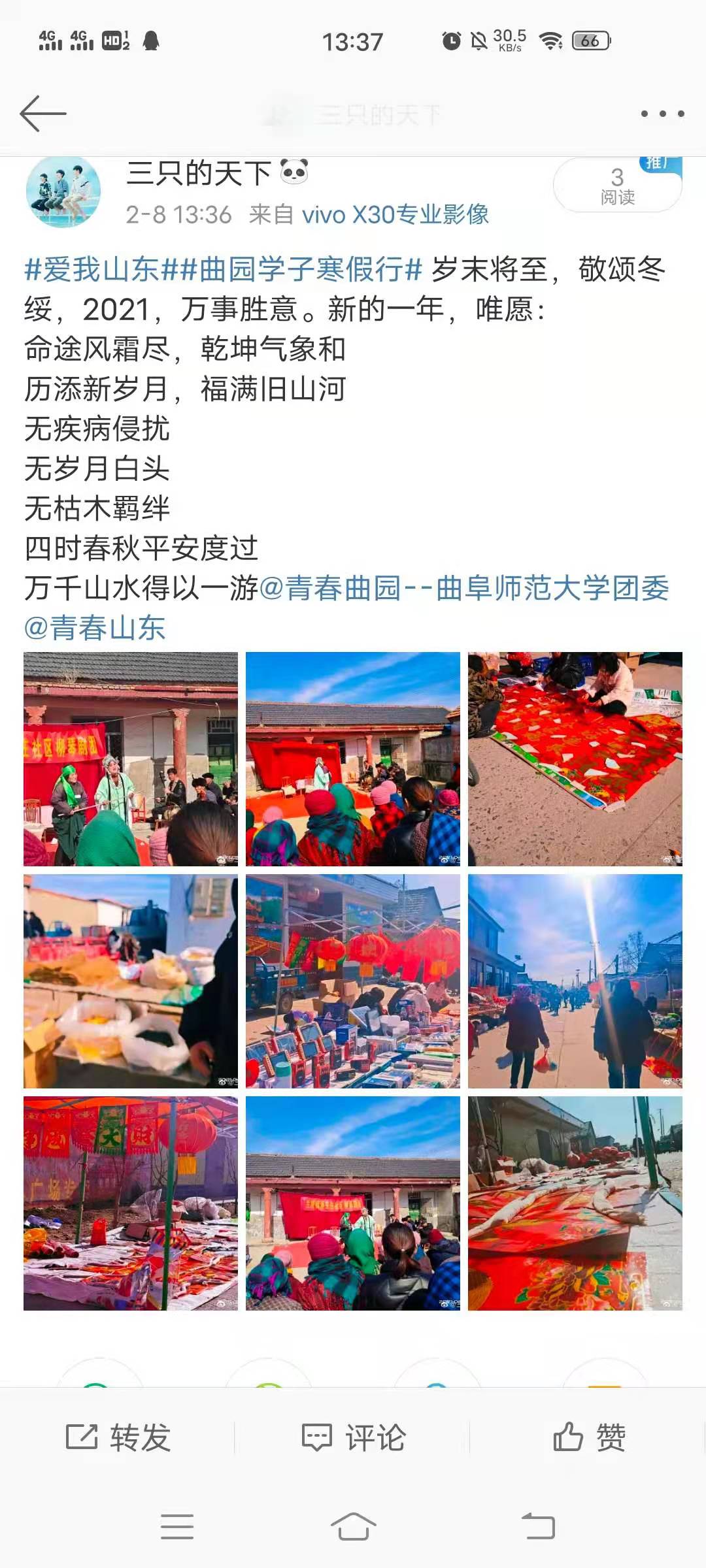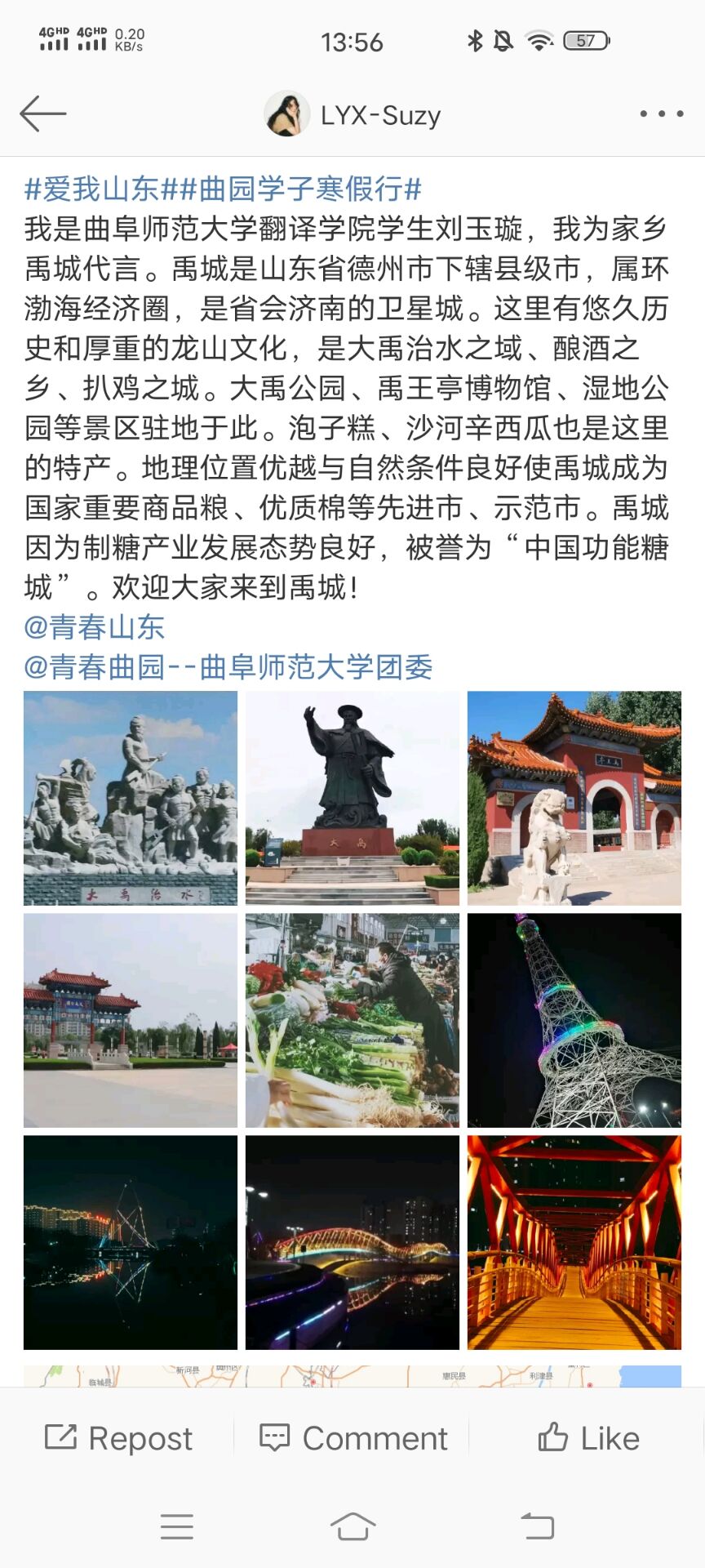 学子根据活动规则以短视频、Vlog、图文等多种形式宣传家乡、宣传山东,他们将作品发至微博、抖音的互动话题,以此来宣传家乡的美好风貌。在相关负责人的评选与讨论下,选出许多优秀作品。评选过程本着公平、公开、公正的原则,结合作品内容、题材、感情、构图、剪辑等方面进行评判。其中以19级商英二班刘文江、20级商英二班刘敏、20级商英二班刘玉璇等多名同学为代表的优秀作品荣获佳绩。至此,本次活动圆满结束。