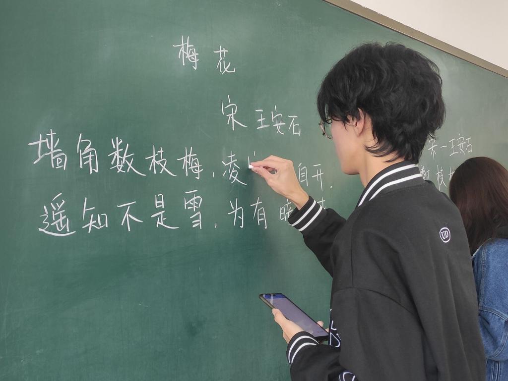 本次比赛设置了师范生和非师范生两个组别,分为钢笔字、毛笔字、粉笔字三个专项。比赛伊始,参赛学生有序就坐,满怀自信,等待比赛开始。比赛过程中,同学们聚精会神、认真专注,他们的作品章法自然,版面整洁,令人赏心悦目。钢笔字温雅秀逸、外柔内刚;毛笔字笔走龙蛇、刚健有力;粉笔字遒劲凝重、流畅稳健,参赛学生在短短几十分钟内便完成了高质量的作品。经过评委老师的仔细挑选,张浩嘉、王怡苏、封梦凡同学分别获得了粉笔字、毛笔字、钢笔字一等奖,各组成绩前三名将被推荐至校级比赛。至此,第三届“杏坛杯”三笔字选拔赛顺利结束。