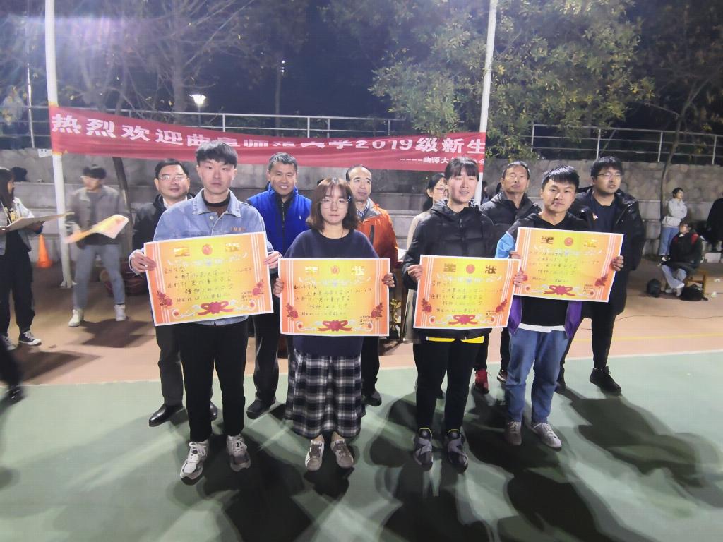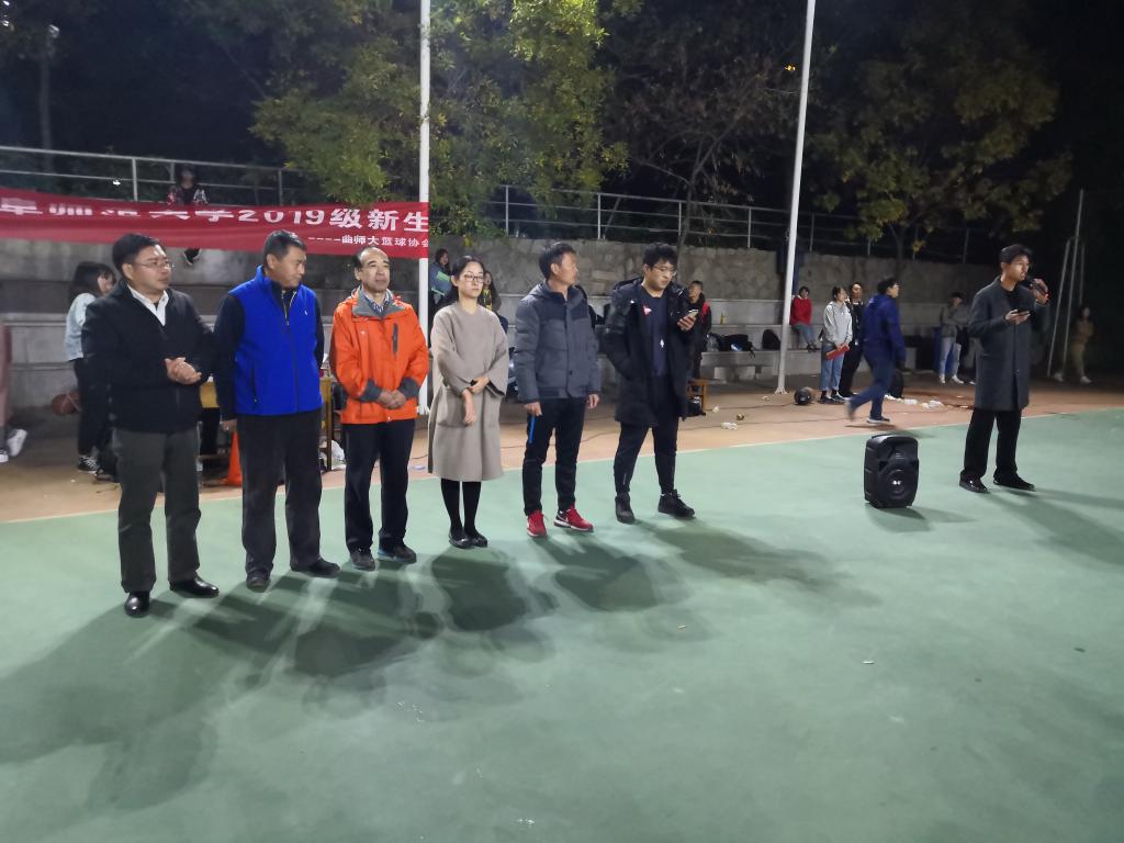 10月26日21:30,曲阜师范大学“迎新杯”篮球赛决赛暨闭幕式于东操场灯光球场举行。体育教学部王哲、毕思泉老师出席了闭幕式。来自各学院的十六支球队也参加了本次活动。