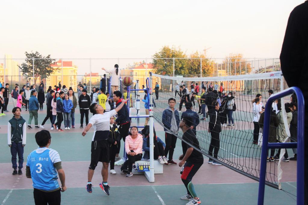 及美术学院组成的美翻男排联队与地理与旅游学院组成的男排联队于东排球场进行男子排球四强争夺赛。双方本着“友谊第一,比赛第二”的原则和“互相学习互相尊重”的态度展开了一场精彩绝伦的排球赛。