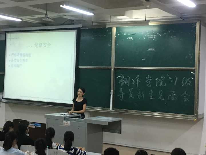 大会伊始,宁晓文老师和学生会主席团成员向新生做了简短的自我介绍,并对我院情况做了概述。随后,在学习方面,宁老师向新生展示了2013级学霸宿舍、学霸班级取得的丰厚硕果,并强调要充分发挥学霸的学习榜样作用和良好学习氛围对集体的熏陶作用。在纪律安全方面,宁老师就饮食安全、交通安全和人身财产安全方面对新生作出了提醒。在个人品德方面,宁老师对新生进行了感恩教育、人际关系教育和责任心教育。最后,由教官向新生传达了军训工作安排及期间的纪律问题和注意事项。至此,本次辅导员新生见面会圆满结束。