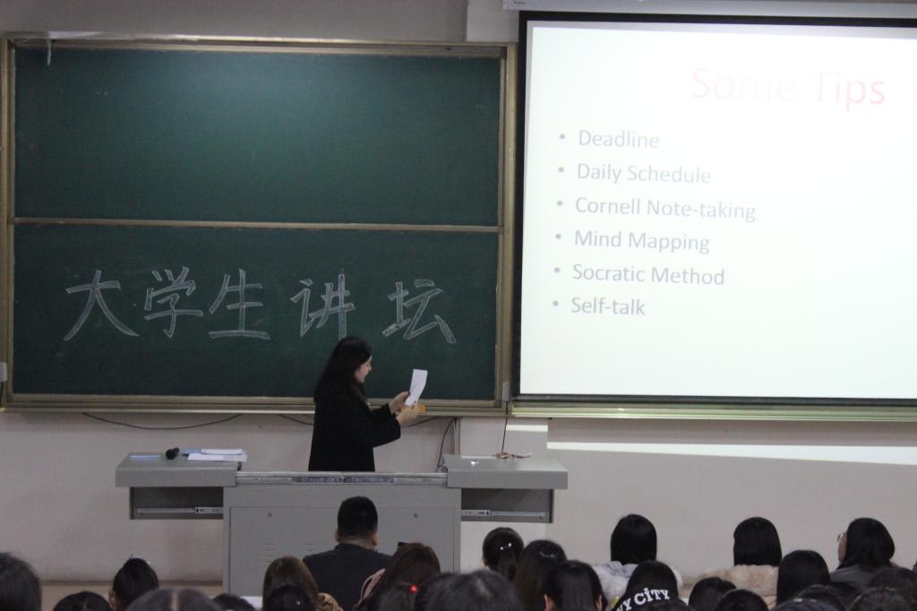 在本次大学生讲坛活动中,我院马丽同学的精彩演讲使同学们对大学和人生有了更明确的目标,提高了同学们的学术与人文素养,极大带动了我院积极向上的学习气氛,对创建校园特色文化活动品牌起到了极大的推动作用。