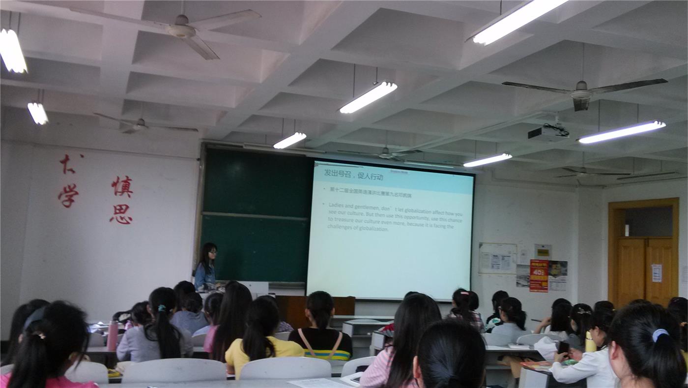 本学年伊始,刘琳、魏然、岳金磊、朱丽莎、姚群、等优秀毕业生利用课余时间充分备课,每周都为同学们献上一次精彩的公开课。在口语演讲方面,刘凤等优秀毕业生和同学们分享了做好演讲的诸多经验。如在演讲过程中,演讲者与观众眼神交流的重要性、努力说服观众的关键性和获得观众积极反馈的必要性。姚群在分享演讲经验时还谈到同学们要勤于学习,拓宽自己的知识面;在语音语调方面,同学们平时要注意为自己营造语言氛围,为自己制造机会多说多练。在英汉翻译方面,岳金磊等在分享英汉翻译经验时谈到英语与汉语的不同之处(英语重结构、多长句、多被动、多抽象,而汉语重语义、多短句、多主动、多具体),以及断句在英语中的重要性。
