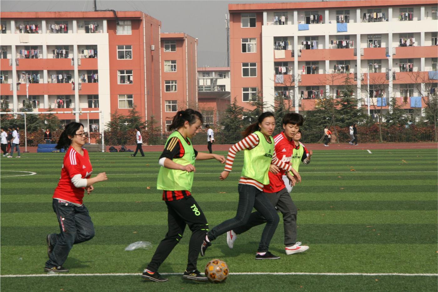 对美术学院的女足比赛在学校西操场上拉开帷幕。