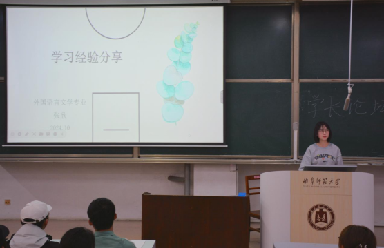 为2024级新生举办学长论坛。本次论坛由我院2022级外国语言文学专业硕士研究生张欣、第十二届团委及学生会主席刘奕涵主讲,2024级本科生积极参与。