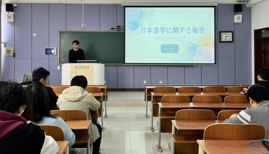 庞健于2019年毕业于曲阜师范大学日语系,后赴日本进修,目前在大阪公立大学攻读经济学博士学位。庞健分享了个人的升学经历,从在国内申请留学资格,到赴日深入学习和开展研究,给同学们带来了宝贵经验和实用建议。谈及申请条件和方法,庞健谈到,扎实的专业知识和明确的研究规划是成功的关键。他建议同学们在校期间努力提升日语水平,注意拓宽专业知识面,增加研究经验。