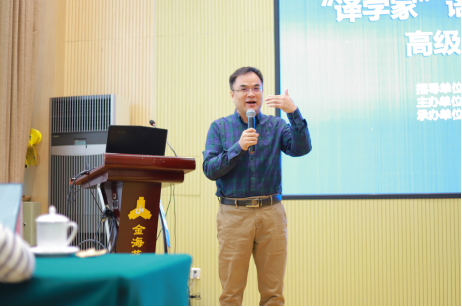 柴明颎教授就“新时代数字技术赋能下的翻译人才培养平台构建”做主旨发言。柴明颎教授从自身经验出发,向大家生动详尽地介绍了MTI专业的发展历程、建设成绩及面临困境,并与大家共同探讨了翻译专业实训平台建设的可行性与优势。