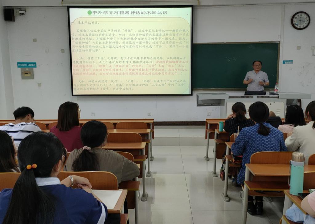 讲座中,李教授从专业的历史角度,分析了古朝鲜的建立和发展过程。其中着重解读了檀君朝鲜、箕子朝鲜、卫满朝鲜的历史文化内涵、与中华文明的关系及学界主要争议点。李教授指出,神话与历史具有相关性,应当把“檀君神话”放到具体的历史范畴,科学地鉴别其中的历史内核。就古朝鲜与中华文明的关系问题,李教授认为,朝鲜半岛早期国家的形成和发展与中华文明关系密切,但应避免过于夸大其相关性问题。