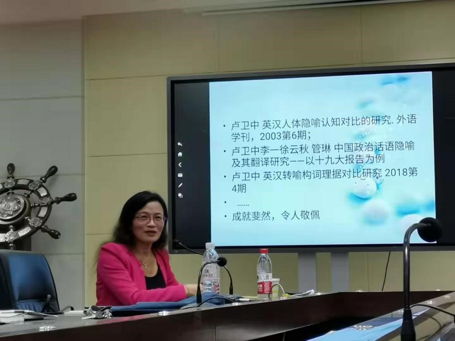 10月23日下午,徐珺教授做了题为“基于语料库的商务话语研究——以商务隐喻翻译为例”的第一场报告。报告伊始,徐教授以“吃食堂”、“吃工资”、“吃苦游”、“Waves ate away the beach”等与“吃”相关的英汉表达为例激发了大家的思考。随后,徐珺教授切入正题,对商务隐喻翻译相关研究现状、隐喻翻译研究存在的问题和英汉财经报道平行语料库的建设做了系统介绍,并采用语料库方法分析了英文财经类文本中人体隐喻、健康隐喻、体育隐喻和动向隐喻的分布情况、主要翻译策略以及影响策略选择的因素。报告期间,徐教授还为大家播放了电影《刮痧》的部分片段,借以直观地展示中英文化的差异。