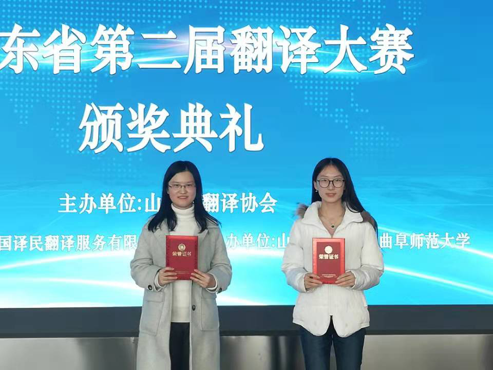 院长卢卫中、山东财政大学外国语学院院长李毅、译国译民山东公司总经理孟现朋以及我省其他高校外国语学院院长出席典礼并担任颁奖嘉宾,我院部分获奖选手也赴济南参加了此次活动。