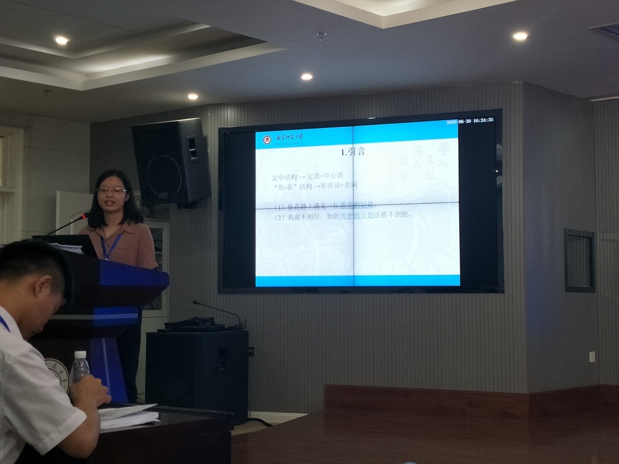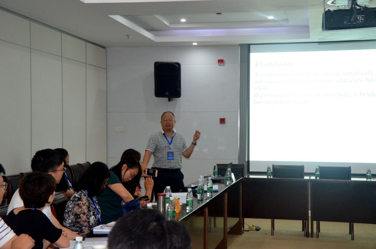 周统权教授和李德高教授主持了分会场的学术报告,并分别做了《从语言加工的预期性到定中加工的预期性》和《现代汉语双字词中成分汉字位序信息加工的ERP研究》的报告,受到专家们的一致好评。研究生代表在小组发言中汇报了各自的研究成果,分别是纪倩倩《现代汉语“形-名”结构的认知加工研究》,马文玲、薛立风《汉语量词与名词搭配的跨通道研究》,高晨《“的”字隐现对汉语“名-名”定中结构的加工影响》。借此成立大会,我院语言与脑科学研究中心首次集中展示了已经取得的初步成绩,同时向国内学界宣誓——曲阜师范大学正在神经语言学研究的道路上不断进取、砥砺前行!