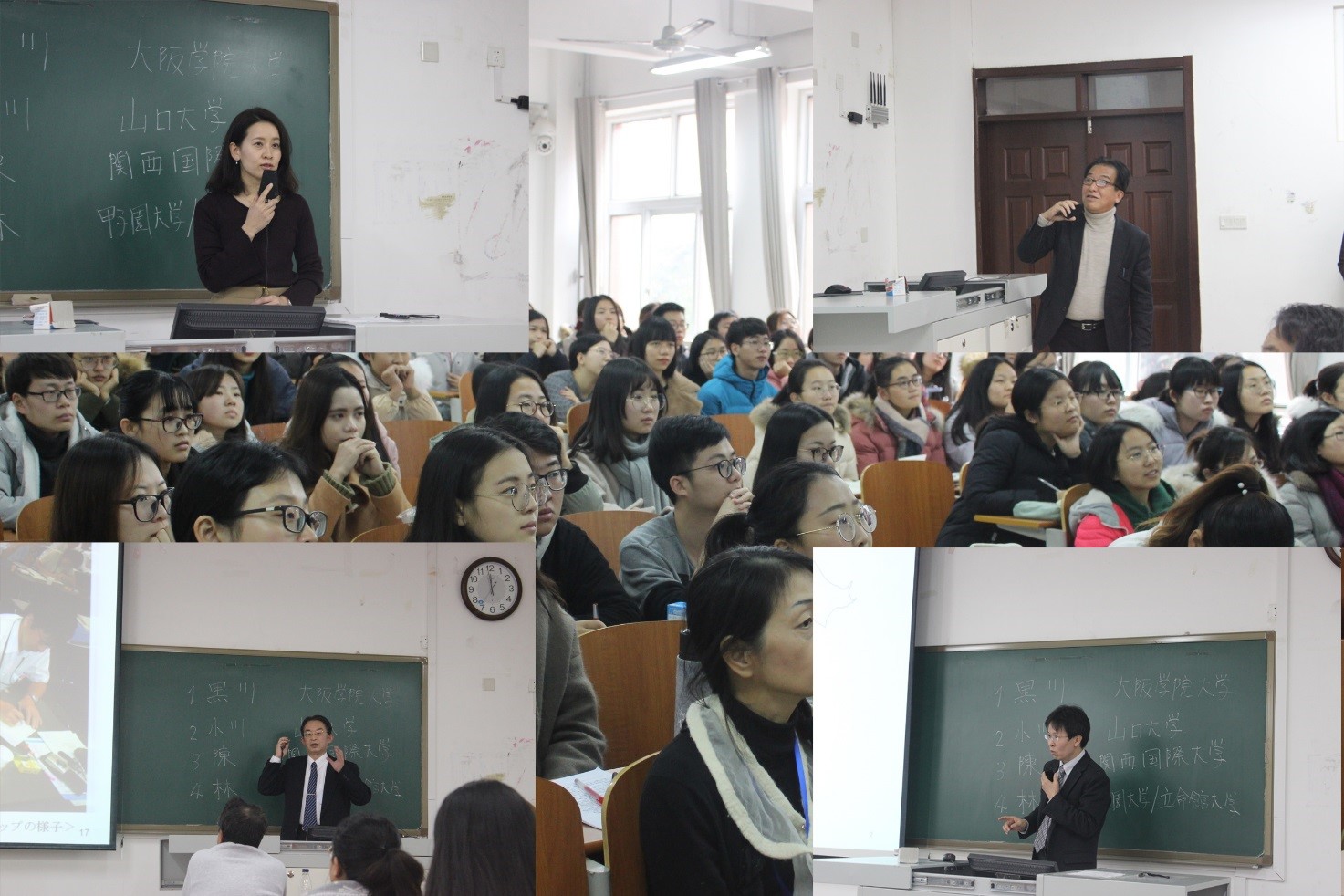 2017年12月28日,我院邀请来校参加2017年度日本教育情报学会国际交流研究会的日本4所大学教授,在S107教室为日语系学生举行了专题报告会。日本教育情报学会会长、立命馆大学教育开发机构长、甲子园大学特聘教授林德治教授,山口大学学生支援科小川勤教授,关西国际大学信息学院陈那森教授,大阪学院大学教育学院黑川MAKI教授分别介绍了各自大学的情况,并以个人研究为主题分别作了精彩的学术演讲,最后与到场的同学进行了热烈的讨论和交流。