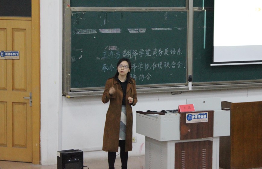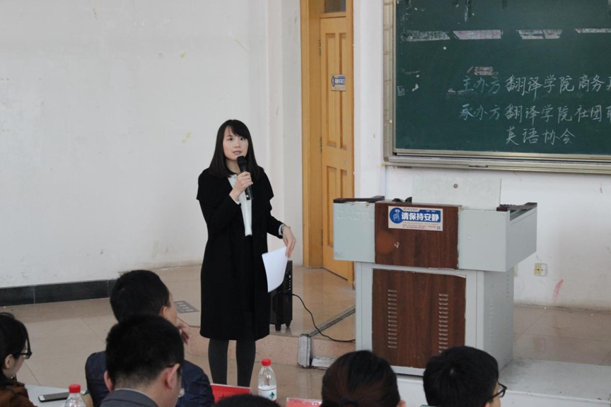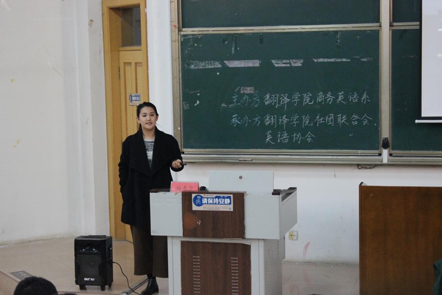 李倩师姐与大家分享了考研体会和工作经历,她从如何准备考试,如何提高翻译、口语、听写能力,以及如何选择适合自己的考研学校等细节之处讲起,不断激励大家要坚持不懈地把每一件小事做好,她提醒大家要珍惜时间,加强与老师的沟通与交流。