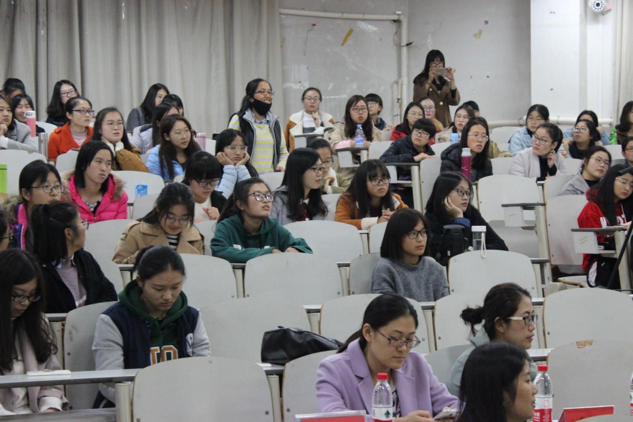在高玉林、潘中华两位同学的主持下,活动正式开始。首先,由卢卫中院长致辞,号召同学们紧随时代步伐,积极学习新知识,做新一代有梦想、有追求的时代青年。接下来,由师哥、师姐们分别就自己的求学和职场经验进行了生动的演讲。