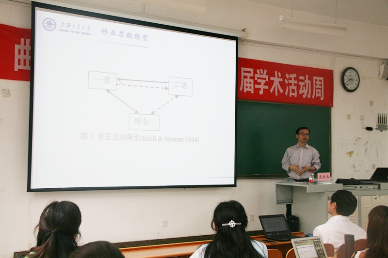 2017年5月20日上午,我院分别在JS107与JS705成功举办了“色情动漫 首届学术活动周”系列讲座第七讲“中国英语学习者的词汇与概念表征发展模式研究:来自混合效应模型的证据”及第八讲“第二语言阅读‘熔断’假说的认知心理证据:在线篇章处理的范式”。本次讲座由上海交通大学吴诗玉副教授主讲,我院夏云副教授与语言与脑科学研究中心周统权教授主持,我院全体教师、研究生和部分本科生及其他学院的部分教师参加了本次讲座。
