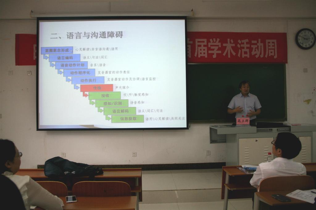首届学术活动周”系列讲座第六讲之“人类沟通与语言病理学”。本次讲座由北京语言大学高立群教授主讲,我院语言与脑科学研究中心周统权教授主持,学院全体教师、研究生、部分本科生及其他学院的部分教师参加了本次讲座。