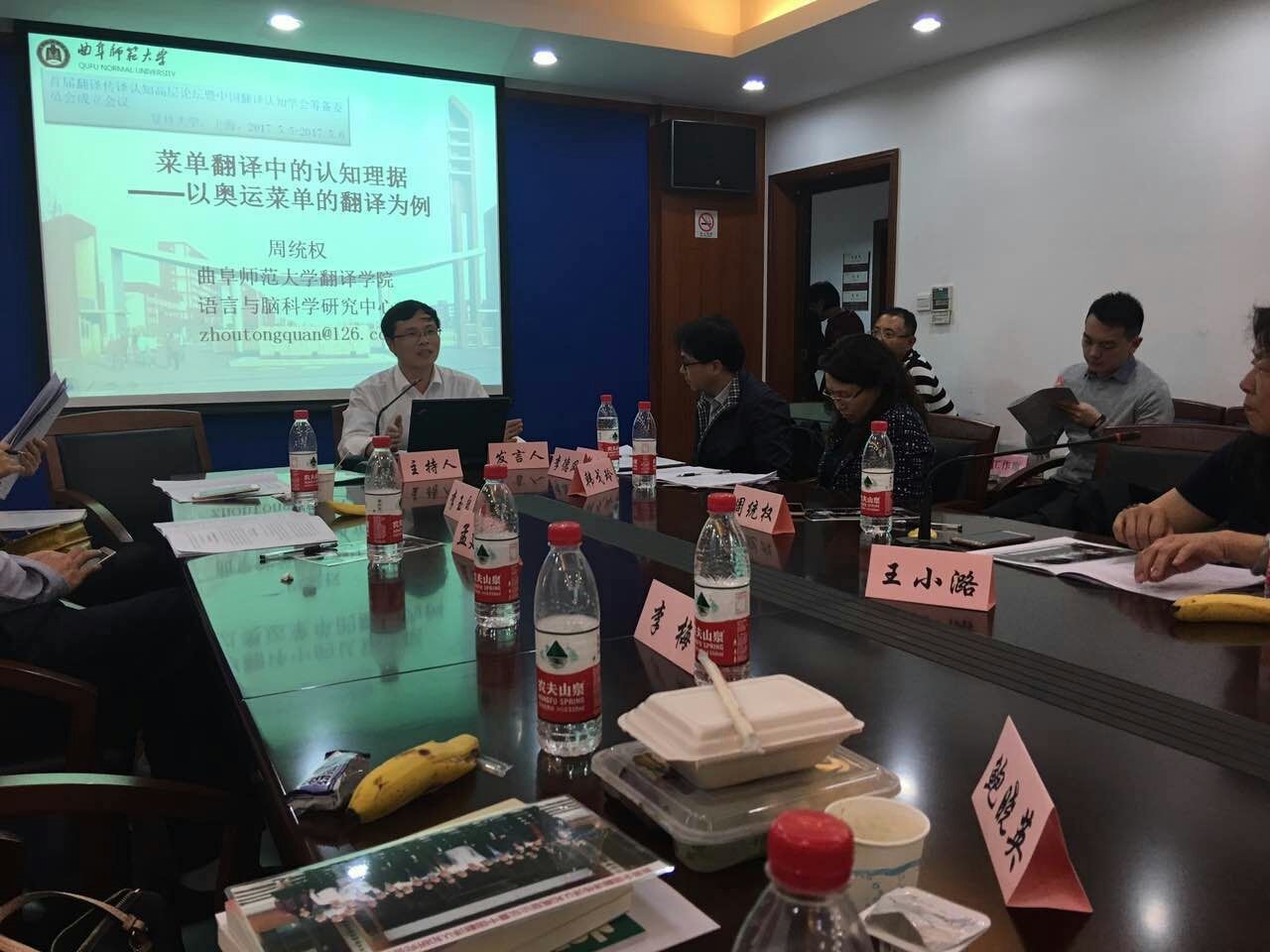 5月6日,首届全国翻译传译认知高层论坛暨中国翻译认知研究会委员会成立大会在上海复旦大学外文学院召开,来自全国部分高校和研究院的专家和学者20多人共同探讨了中国文化“走出去”和“一带一路”倡议下中国翻译、传译、认知等领域理论与实践的最新国内外研究成果和前沿展望。我院的周统权教授应邀出席会议并当选为“中国翻译认知研究会常务理事”,他的会议报告“菜单翻译中的认知理据:以奥运菜单的翻译为例”引起了与会者的热烈讨论,展示了曲阜师范大学翻译人的风采。