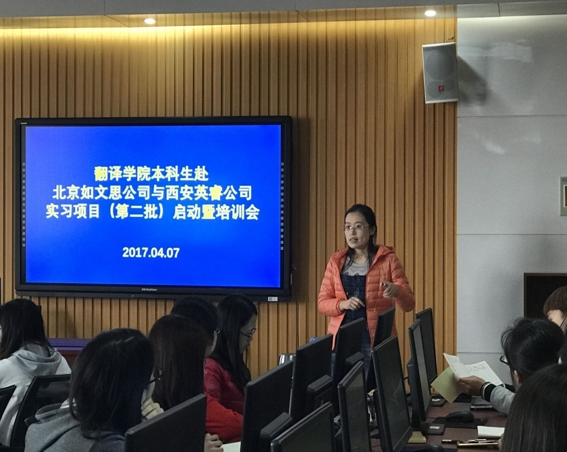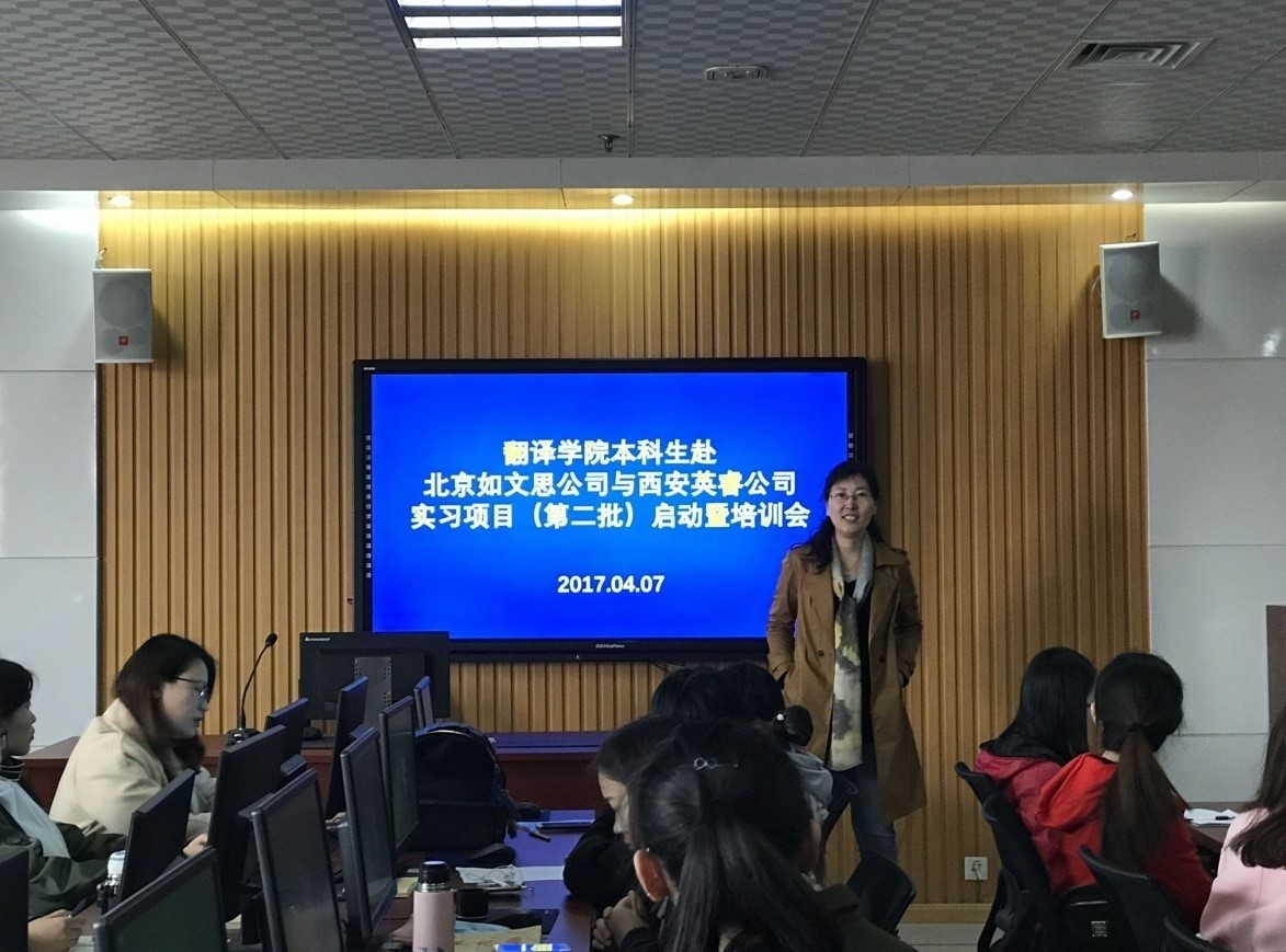 4月7日下午,翻译专业本科生赴北京如文思科技信息咨询有限公司与西安英睿信息科技有限公司实习项目(第二批)启动暨培训会在教学楼JC1003计算机辅助翻译实验室顺利举行。色情动漫