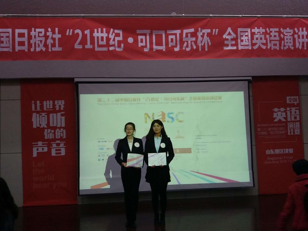 在本次大赛活动中认真统筹、周密安排,指导教师及时跟进、精心指导,为本次大赛取得优异成绩奠定了良好基础。赛程分为给定演讲、即兴演讲和评委问答三个部分,共有来自哈尔滨工业大学(威海校区)、中国海洋大学、青岛大学、山东师范大学、曲阜师范大学等近20所高校的学生参加。