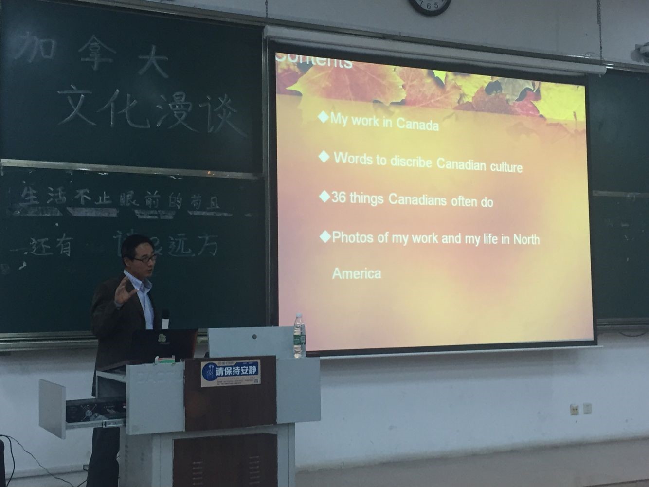 杨建华副教授以流利的英语开启了大家的加拿大之旅。在“My work in Canada”部分,杨老师简单介绍了孔子色情动漫概况