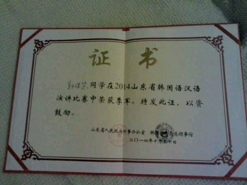 这次比赛是继2007年10月,韩国语系参加的山东省人民政府举办的锦湖杯比赛中获得二等奖后获得的又一个省政府奖。相信在韩语系老师的指导下,同学们会再创佳绩。