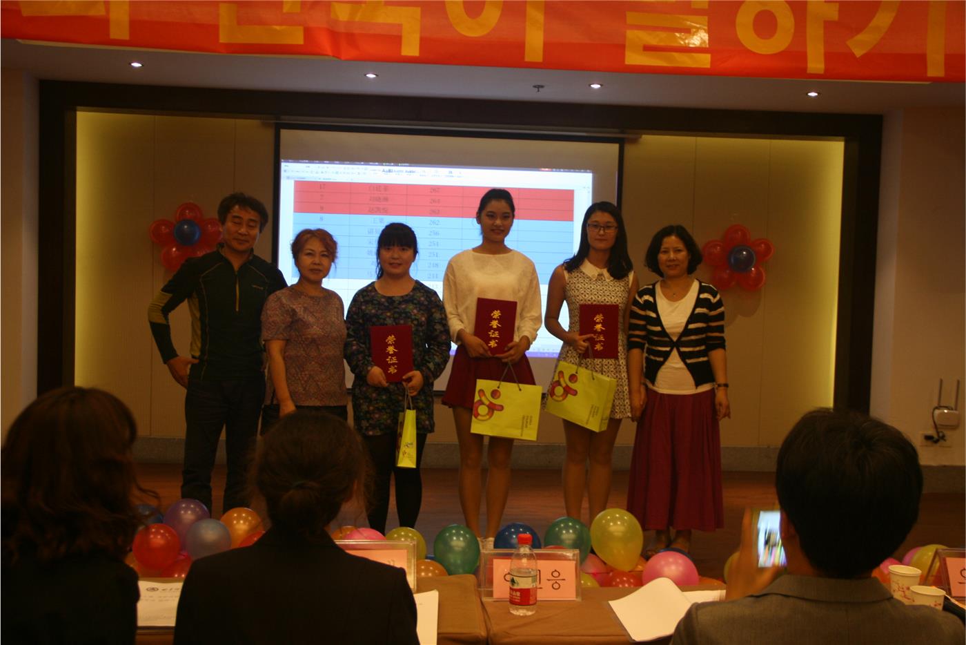 本次大赛共有22名选手参加,参赛者须进行演讲及接受评委现场问答两个环节。评委团将从选手的主题内容、演讲能力、即兴问答规定时间和观众反应进行评分。比赛伊始,科研副院长夏云、韩国语系主任金东国依次致辞,评委团代表为选手及观众宣读比赛规则。据介绍,今年是大赛的第五届,不仅参赛规模发展,内容也更加丰富。比赛中,参加本次韩国语演讲大赛的选手他们以新颖的演讲主题、流畅的表达、丰富的表现形式赢得了现场观众的阵阵掌声。经过激烈角逐,郭继梁获同学喜获一等奖,白廷菲、刘晓琳、赵凯悦获得二等奖,王粟等获得三等奖,12名同学获得优秀奖。比赛最后评委团代表总结赛况并致辞,金东国教授为五位评委颁发了奖品及证书,至此大赛圆满结束。