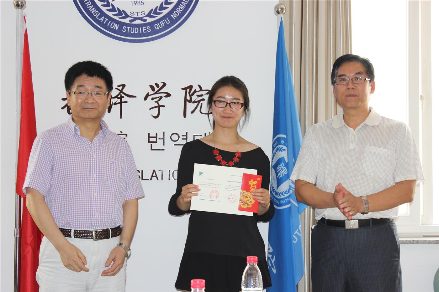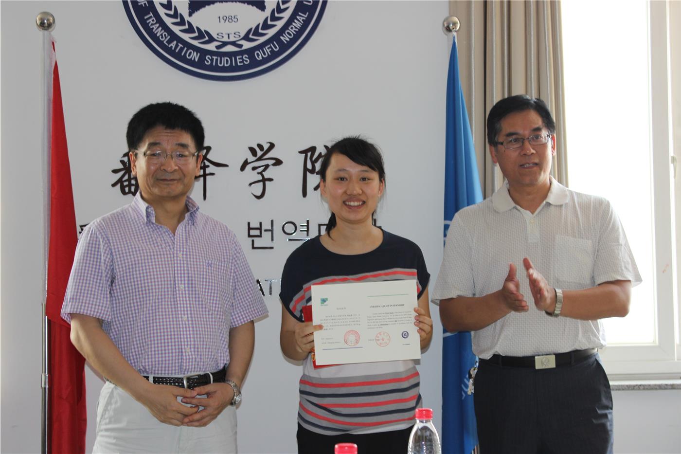 选派了8名2012级MTI优秀学生进入曲阜师范大学如文思集团(RWS)公司实习基地进行了为期一年的实习。实习工作取得了圆满成功,全体同学通过了公司的业绩考核,其中刘学娇等5位同学获得了优秀等级。