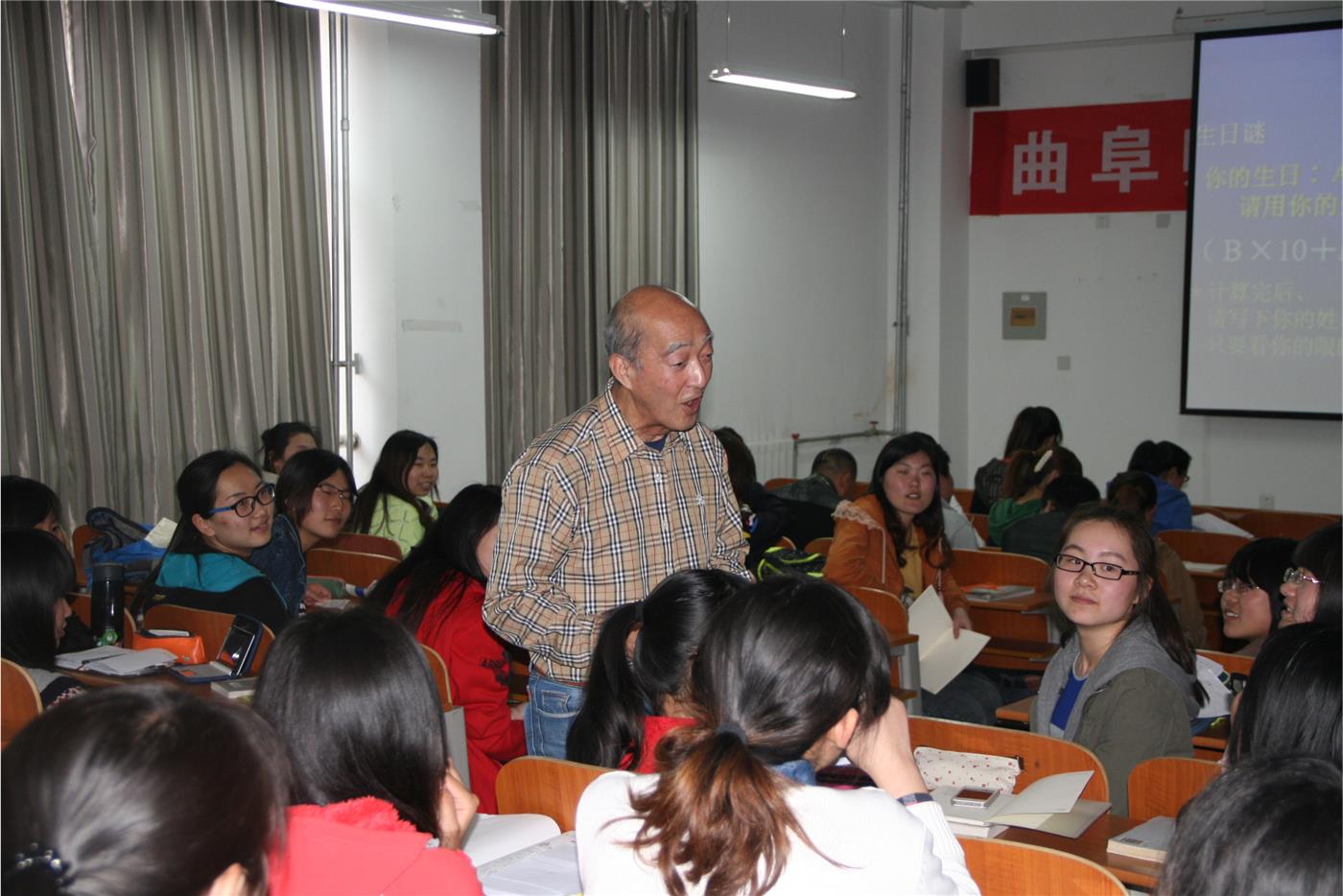 讲座伊始,高田拓教授通过分析日本的武士道、花道、茶道精神等,阐述了日本民族文化底蕴与内涵。随后,他播放了一段日本实业企业家稻盛和夫在中国讲演的视频,视频中稻盛和夫为中国企业家讲解了日本商业和企业家们的经营哲学。在解说完日本精神文化环节后,高田拓教授和大家进行了“猜生日”的游戏,即把生日数字通过某种运算拼凑成一个新的数字,然后由这个新的数字推算出生日,在场学生们纷纷对高田拓教授的心算能力表示惊叹。最后,高田拓教授从自然、佛教以及中国儒家三个方面解说并分析了其对日本日常生活严谨礼仪细节的影响。高田拓教授诙谐幽默而又不失典雅的谈吐,赢得了学生们的一致好评。