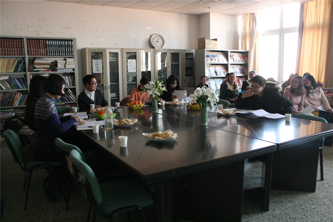 参与此次开题的研究生经过认真的准备,呈现出丰富的研究课题,包括林巧琳的《韩国巫俗与中国北方萨满教的比较研究——以本体论和人间论为中心》、高琴的《韩语派生词汉子词根和现代汉语的对比研究——以“-sirapt-”、“-rop-”、“-ha-”“-joek-”为中心》、金国君的《女性弹词小说< 再生缘>中韩版本之间结局构造的比较》、董贺源的《通过分析当代文化地形来看中韩大众文化交流研究》、窦豆的《以后现代解构主义视角研究朴趾源的生态观》和孔清清的《对朴趾源朱子学认识的再论——以< 热河日记>为中心》等内容。各位研究生作论文开题报告后,导师提出问题与研究生们进行交流,并对论文的内容进行提问讨论。
