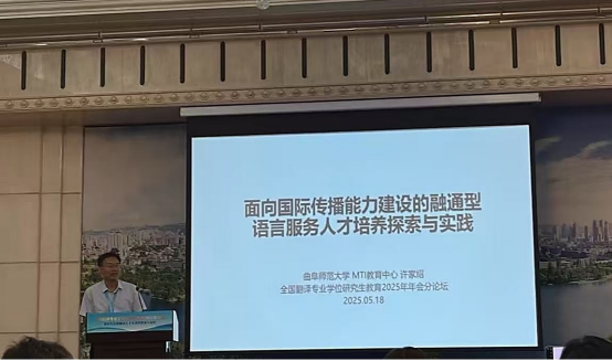 在“高端翻译职业胜任力培养路径”分论坛中,许家绍副教授以“面向国际传播能力建设的融通型语言服务人才培养探索与实践”为题进行发言。强调国际传播能力是国家软实力的核心,MTI教育应依托政产学研用协同机制,培养具备国际传播能力的语言服务人才。他以曲阜师范大学MTI学位点构建"融通型"培养体系为例,介绍该校通过课程体系与行业需求联动的多维要素整合、校企共建翻译项目与实习基地的内外协同实践,以及儒家经典外译、知识产权翻译与国际传播研究的双向国际互通等创新举措,有效提升学生解决实际传播问题的实践能力。