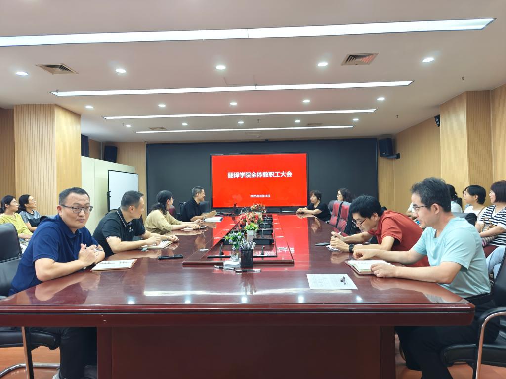 会上,夏云介绍了学院办公室调整的情况和教职工工作变动情况,重点向全体教职工传达了学校关于新学期工作的总体要求与核心部署。紧扣《山东省高等教育学科专业设置调整优化工作方案(2025-2027年)》要求,结合学院特色,从学科专业优化、人工智能赋能教学、教师能力提升等维度,强调全体教师需主动适应高等教育新形势,以能力提升推动学院学科建设再升级。关于下半年学院重点工作,夏院长强调项目申报要“抢先一步”,译协年会要“惊艳一次”,辅修建设要“深耕一层”,数智改革要“贯穿一线”,课程竞赛要“前瞻一年”。