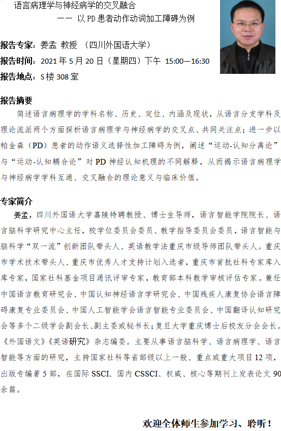 2021年度语言与脑科学研究中心系列讲座之一